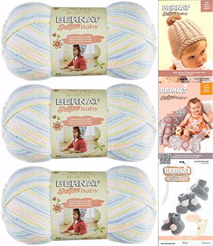 3 Skeins of Bernat Softee Baby Yarn Plus 3 Bernat Patterns to knit and crochet .Patterns included "Hexagon Motifs Blanket" " Hat for Little Ears" and "Pom-Pom Booties"