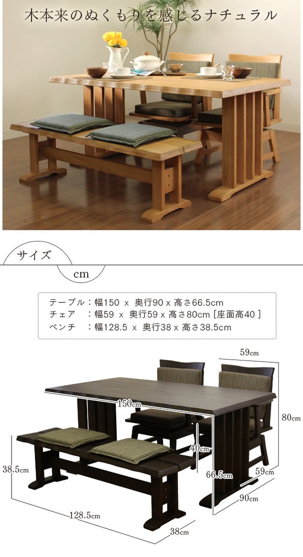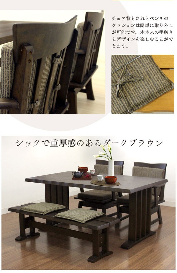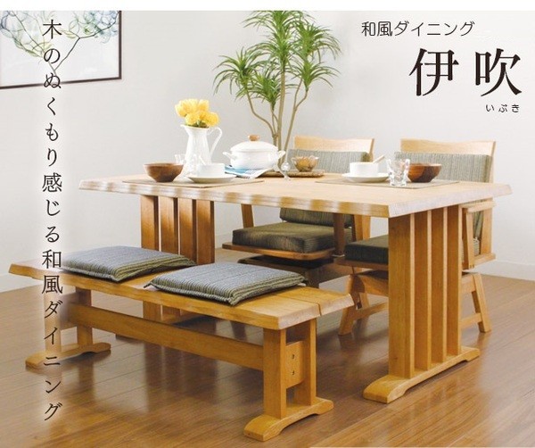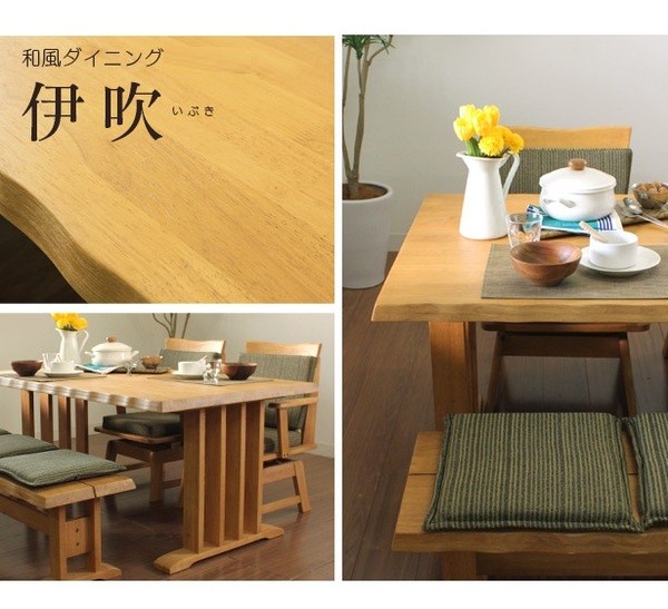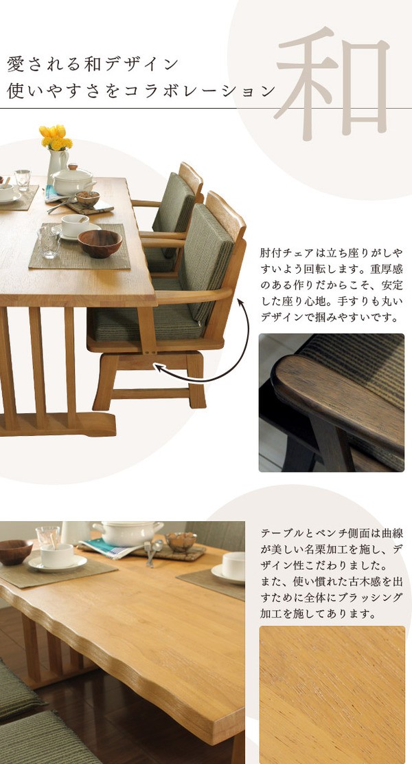 和風ダイニング。全体にブラッシング加工を施しており、天然木の良い雰囲気を最大限に引き出して仕上げています。