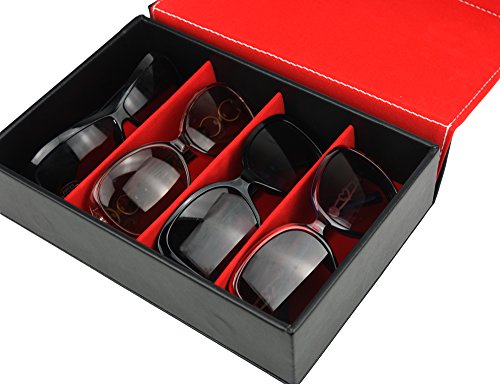 Individual Compartments Dimensions: 2.4 x 6.3 x 2.4 in / 6.0 x 16.0 x 6.0 cm (L x W x H); Suitable for most kinds of glasses. 4 same individual compartments can meet your glasses storage needs.
