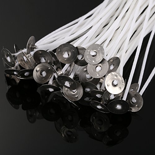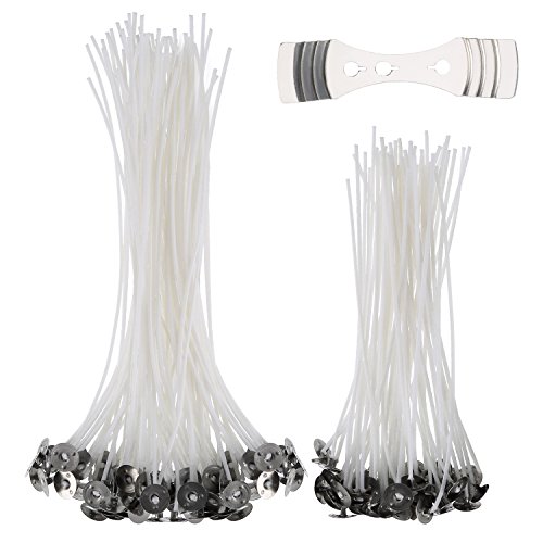 Hestya 100 Pieces Candle Wicks Pre-Waxed Wick with Candle Wick Centering Device for DIY Candle Making, 6 Inch and 8 Inch Long