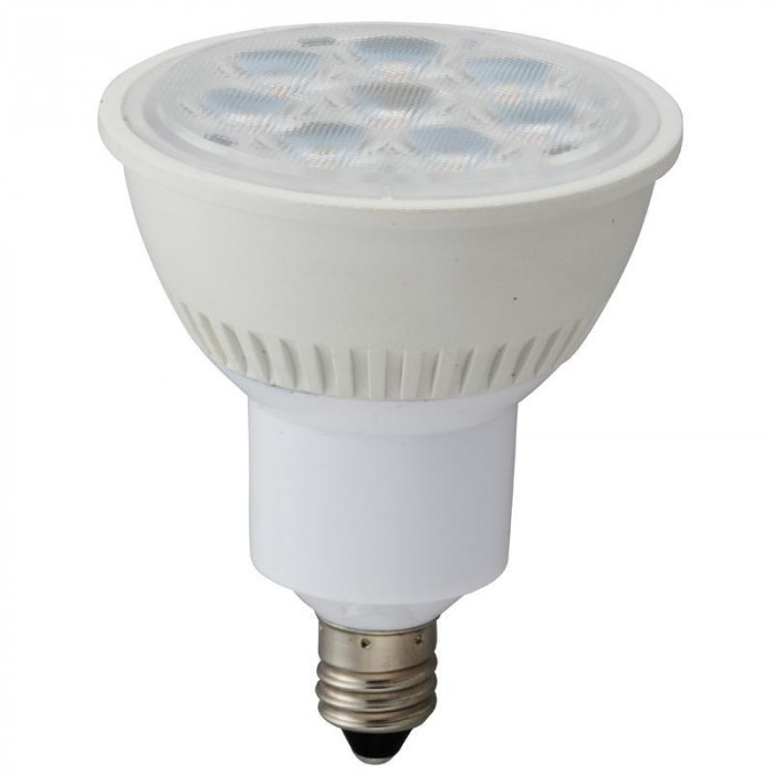 ハロゲンランプ形の調光器対応LED電球。光色は電球色で屋内専用です。
