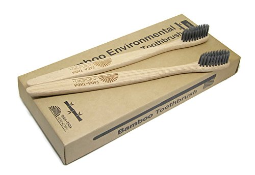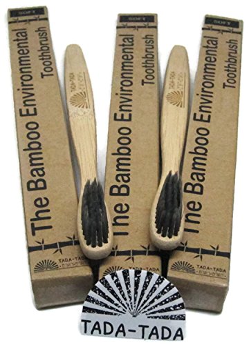 Bamboo Charcoal Extra Clean Toothbrush Natural 100% Soft Bristles by tada-tada 3Pcs.