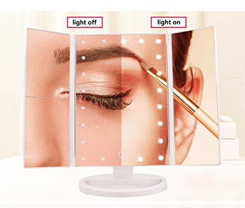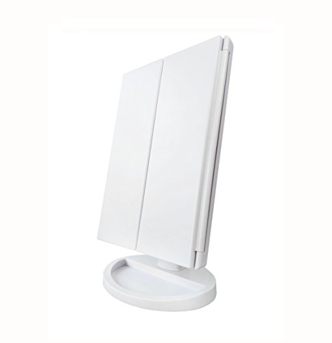 Makeup Mirror with 3 Panels and 21 Light Settings 180 Degree Free Rotation Countertop Cosmetic (White)