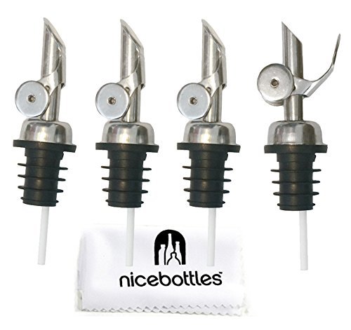 -. Feature : Classy & Elegant, Solid Stainless Steel Pourer with Weighted Lid / Lid Opens & Closes Automatically, Protecting Bottle Contents from Dust & Bugs / Food Grade Stopper & Air Intake Tube; Air Intake Tube Slides Up/Down to Help You Control Pour Speed / Fits Most Standard Size Wine, Liquor and Olive Oil Bottles / Includes a Handy "Nicebottles"-Branded Non-Scratch Microfiber Cloth, Ideal for Cleaning Glass Bottles and Absolutely Perfect for Your Cell Phone Screen!