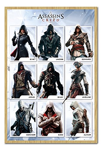 -. Title : Assassins Creed Compilation Poster Magnetic Notice Board Beech Framed - 96.5 x 66 cms (Approx 38 x 26 inches)