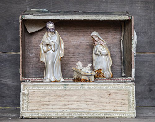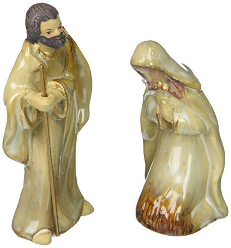 Creative Co-Op XC5084 Natural Lodge Set of Three 4.5" H Stoneware Holy Family