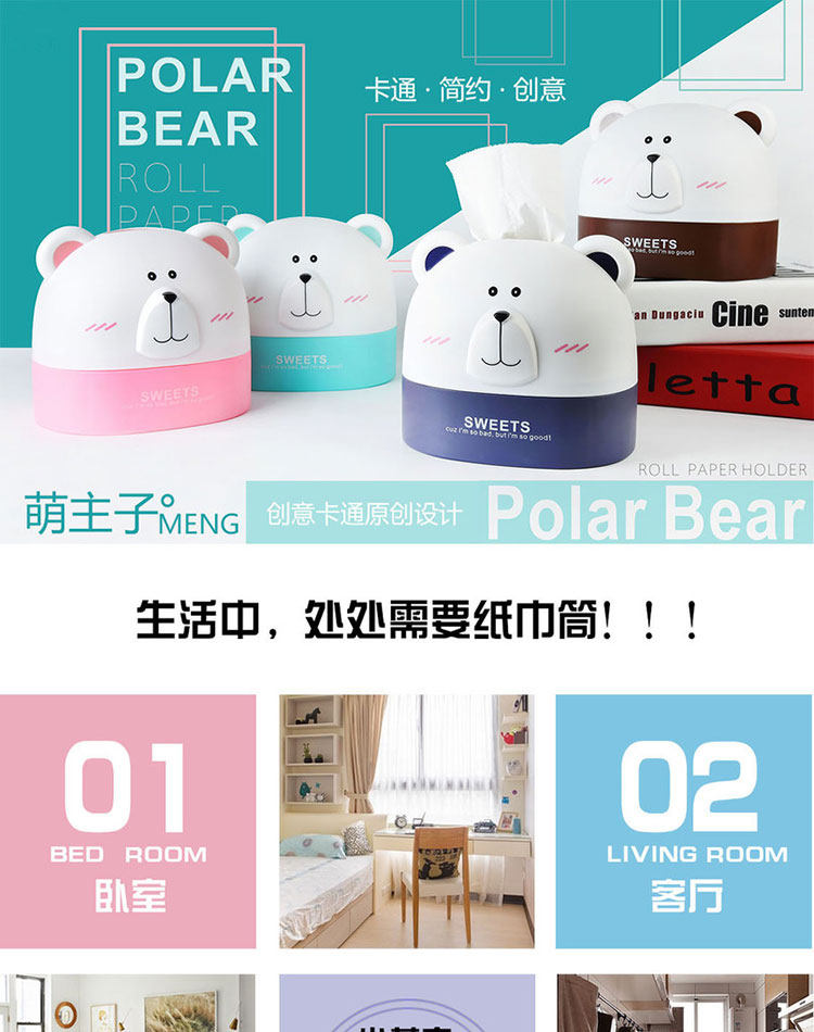 北极熊卡通纸巾盒可爱卷纸筒桌面欧式创意客厅卷纸盒子餐厅卷纸器