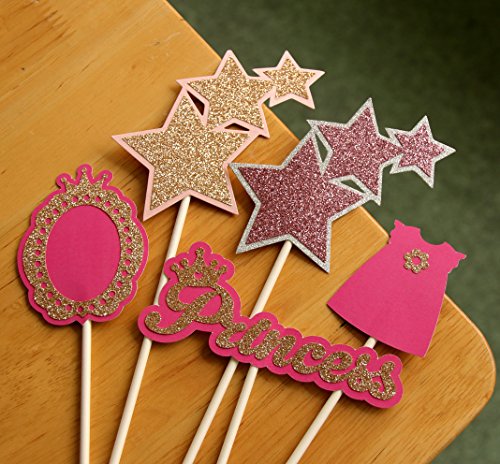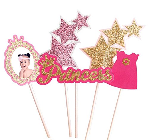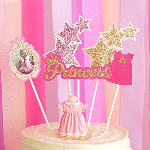 6 Pieces Princess Theme Cake Toppers, Princess Party Baby Shower Cake Topper, Happy Birthday Party Decorations Supplies, Pink and Gold
