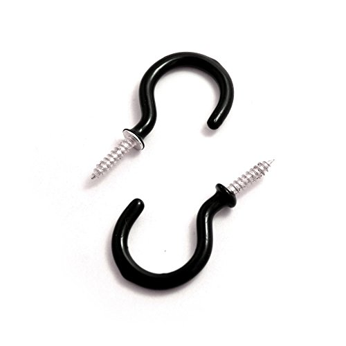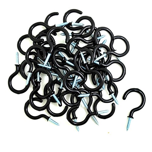 BronaGrand 50 Pieces Vinyl Coated Screw-In Ceiling Hooks Cup Hooks Black 1-1/4"