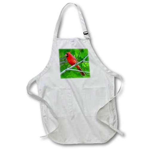 3dRose LLC Red Cardinal Full Length Apron with Pocket, 22 by 30-Inch
