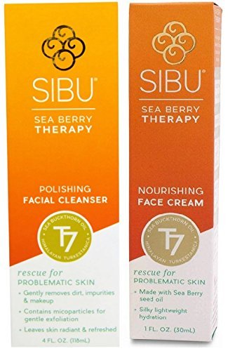 Sibu Sea Berry Therapy Nourishing Face Cream and Polishing Facial Cleanser Bundle with Sea Berry Seed Oil, Olive Oil, Coconut, Orange and Avocado, 1 fl. oz and...