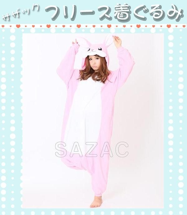 ゆったりとしたシルエットが可愛い「ウサギ」の着ぐるみです。あたたかいフリース素材で着心地もGOOD!!パジャマやお部屋着にもオススメです☆