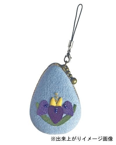 | 5月のお花、あやめがデザインされたしずく型の小物入れ。アクセサリーや薬など、小さな物を入れるのに重宝します。ストラップは取り外しが可能で、バッグの持ち手に付けられます。 |