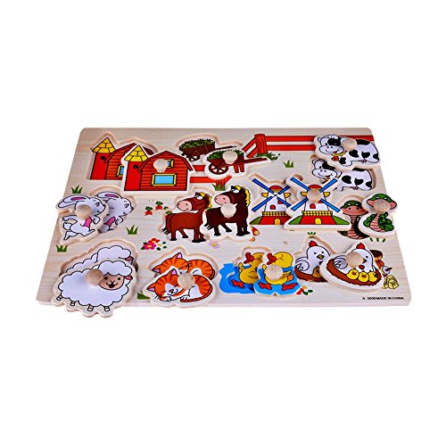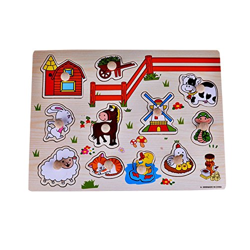 -. Title : Rolimate Preschool Educational Learning Wooden Farm Animals Pegged Peg Puzzle Bundle Shape Recognition Sorter Toys, Birthday Gifts Toy for Age 1 2 3 years old Kids Children Toddler Baby Boys Girls