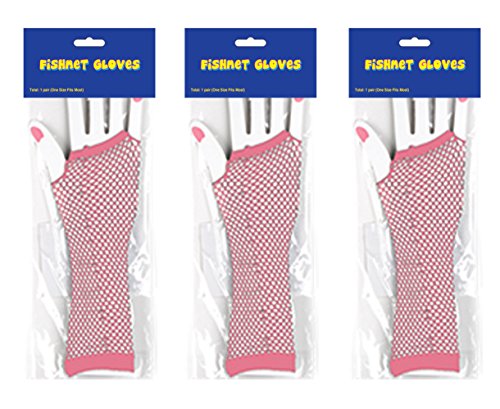 Beistle 60028-C 3 Pairs Of Fishnet Gloves, Cerise