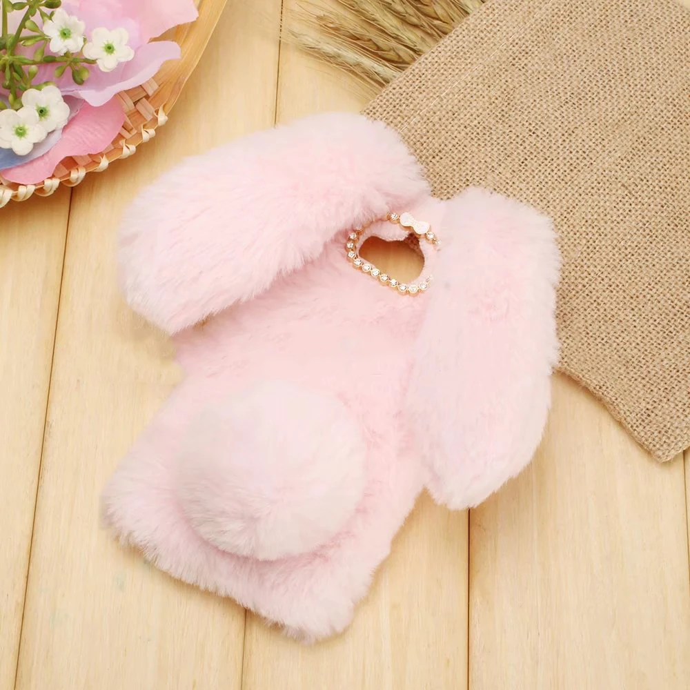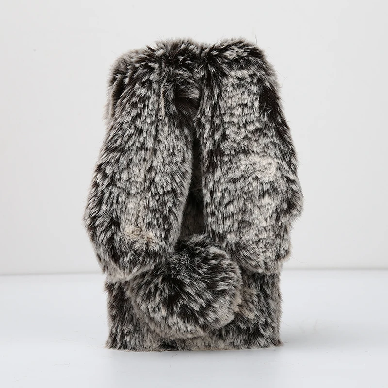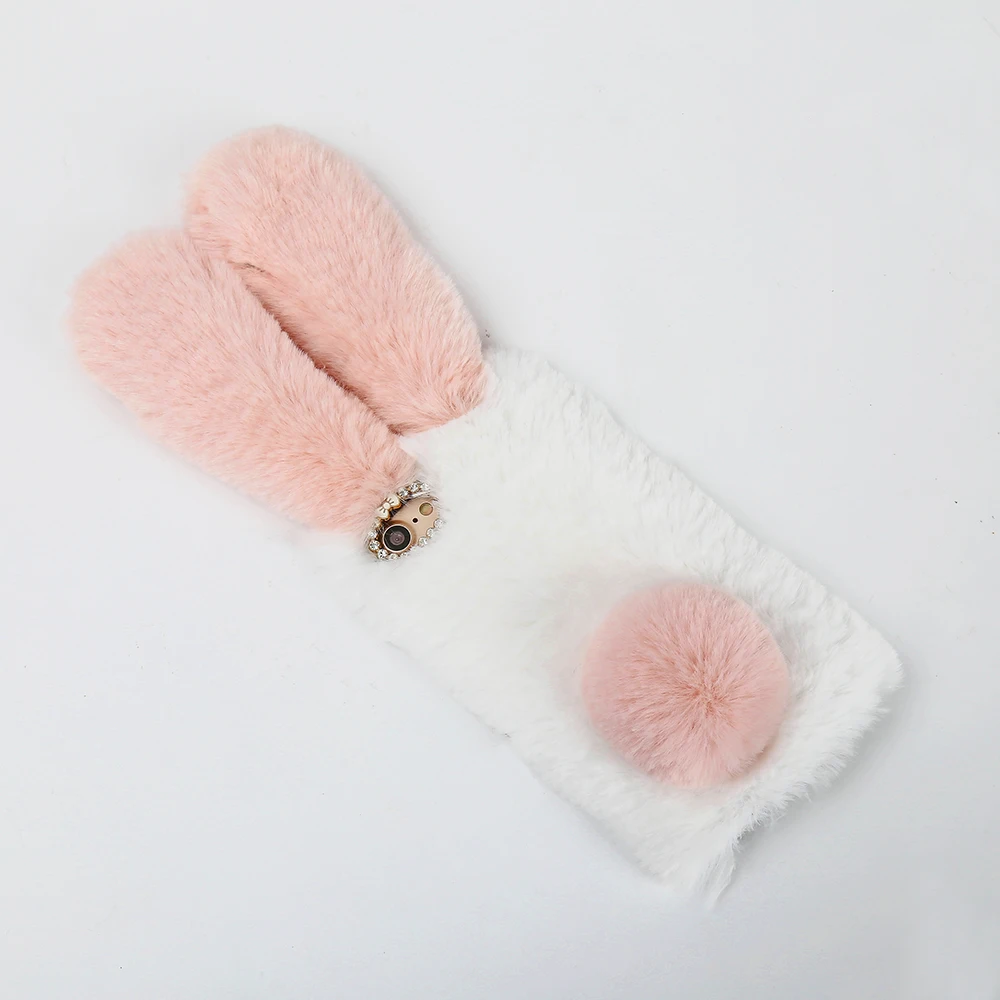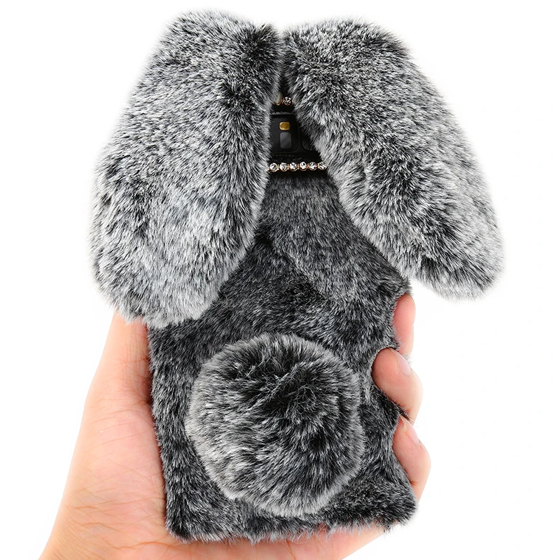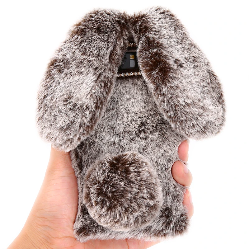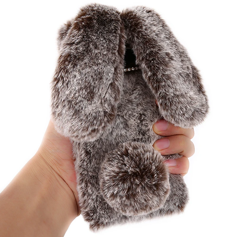 Features:Rabbit Ear Fur Hair Soft Bling Phone Case