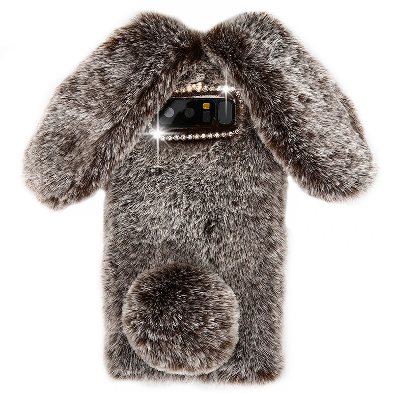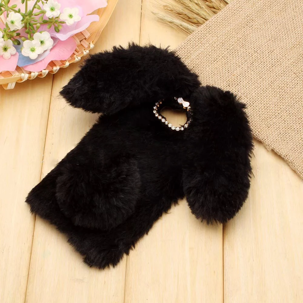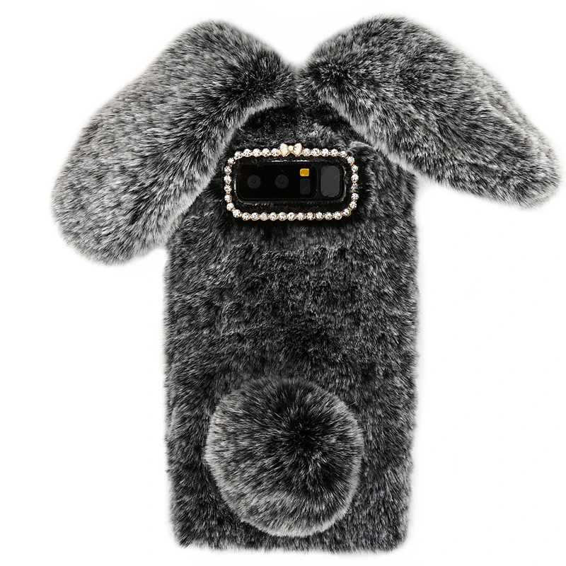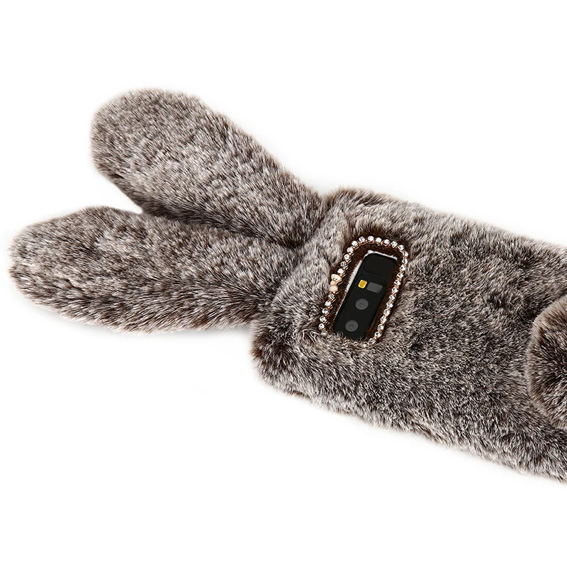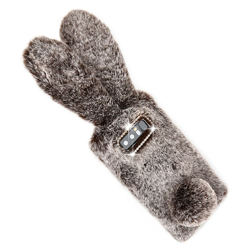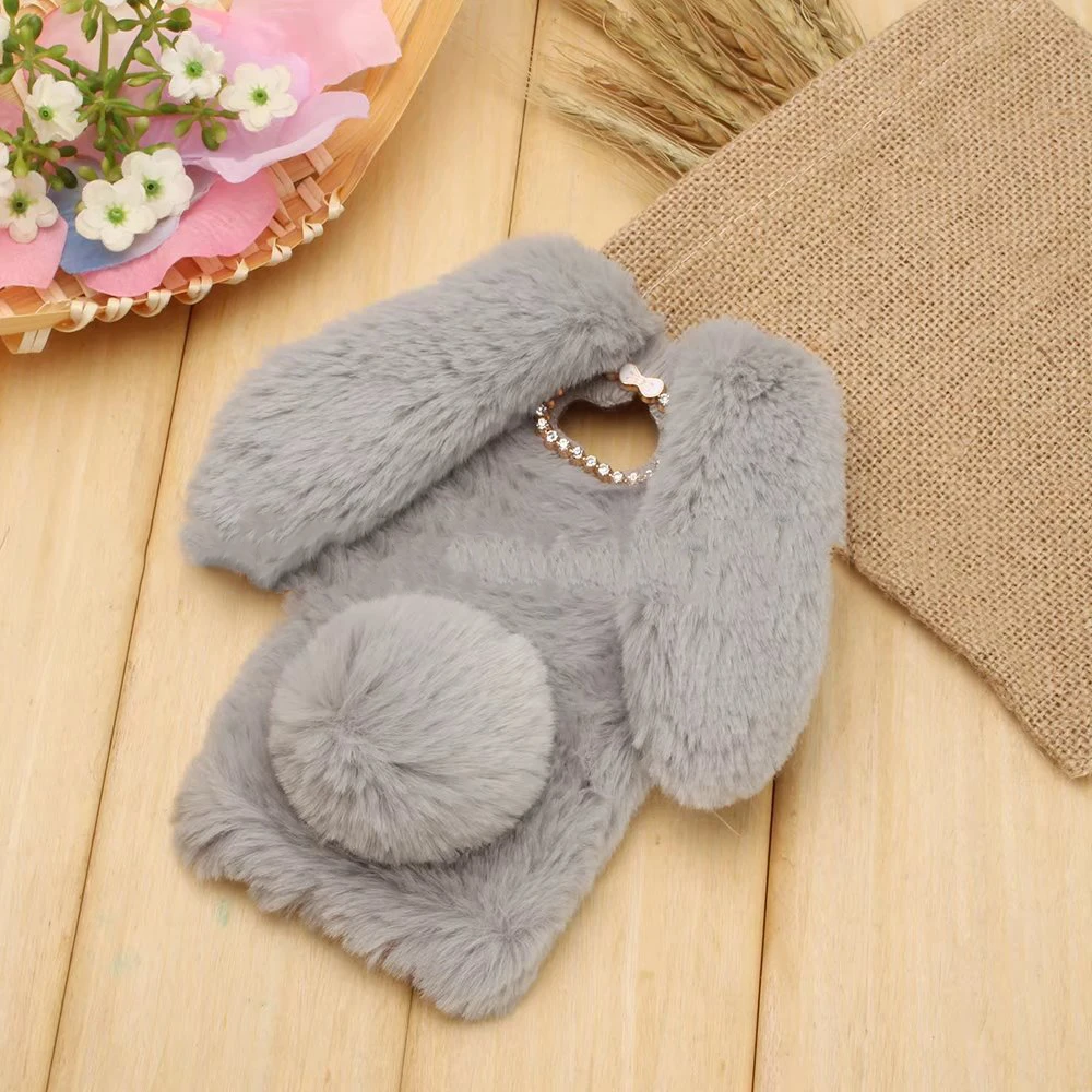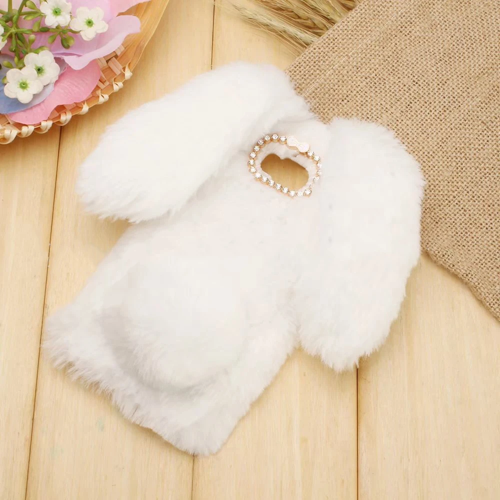 Features:Rabbit Ear Fur Hair Soft Bling Phone Case