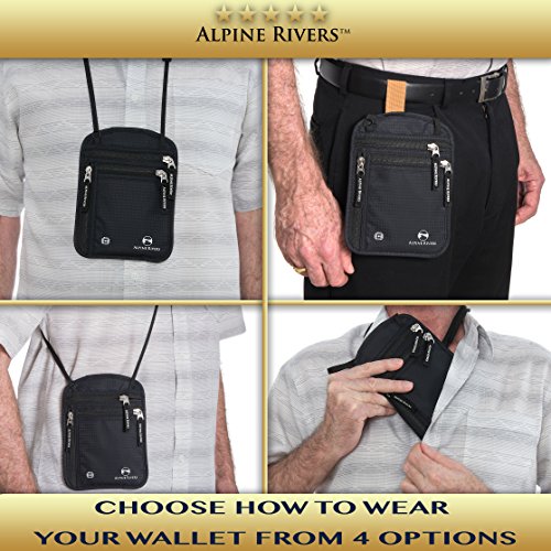 -. Feature : A MUST FOR MODERN DAY INTERNATIONAL TRAVEL: Ultra-lightweight, extra comfortable, with RFID safeguard protection in a slim sleek design, virtually invisible to thieves. One-size fits all, the wallet is fully adjustable and suitable for men, women and children. / BEST QUALITY: A highly durable neck stash & passport holder made using only premium-grade materials. Water-resistant & flexible 210D ripstop nylon, high quality YKK Zips, extra reinforced stitching & seams, with tri-cotton breathable FeelSoft skin friendly moisture absorbing rear mesh to eliminate uncomfortable heat & moisture. / ULTIMATE PROTECTION: The multi-layered lining with the latest RFID Blocking technology material protects you from identify theft, unwanted scans and hi-tech pickpockets. Ensuring your passport, ID and credit card information always remains safe, secure and confidential. / FEEL SECURE IN ANY ENVIRONMENT: Three zippered compartments & large rear pocket provides private concealed storage for your valuables whilst in busy shops, market bazaars, airports, trains, buses, live music concerts or sporting events. Neck pouch can comfortably be worn around the neck, under or over your clothing or at the waist using the belt loop. Please note contents displayed are excluded from purchase: iPhone, cash, credit cards, passports & key. / BONUS GIFT INCLUDED FOR A LIMITED TIME ONLY - RFID Blocking Sleeves (2 Passport & 3 Credit Card). BUY NOW WITH CONFIDENCE - 365 DAY MONEY BACK GUARANTEE with every purchase. Always ships directly from USA.