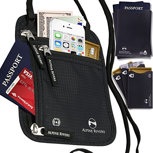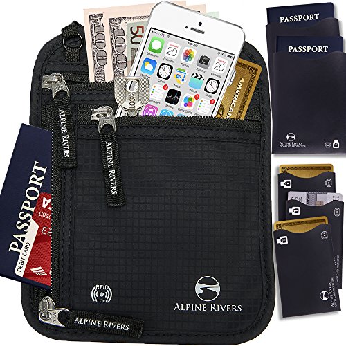-. Title : Neck Wallet Passport Holder & Travel Pouch RFID Blocking + 5 Extra Bonus Sleeves