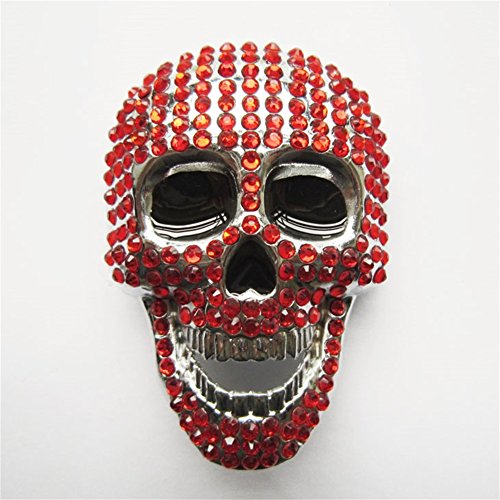 Binding : Apparel Product Description New Red Rhinestones Skull Bling Bling Belt Buckle Gurtelschnalle Boucle de ceinture BUCKLE-SK021RD Brand New In Stock Only Buckle No Stand SKU:BUCKLE-SK021RD Material: Zinc Alloy Heavy Metal Bright Silver Plated Color Ship to worldwide Both Safe Material and Plating by Lead Free Nickle Free Length Size is, 2.36 inch, Height Size is, 3.46 inch, Weight is 4.2 oz Length Size is, 60 mm, Height Size is,88 mm, Weight is 119 g The inner diameter for back loop is 1.58 inch (40 mm), fits belt up to 1.58 inch (40 mm) width snap on leather belt All of our buckles is fitting to all of our Button Snap on Belts you could please choose your favorite belt in our store 0