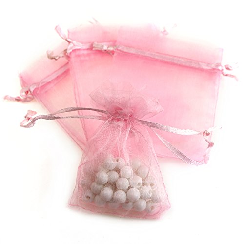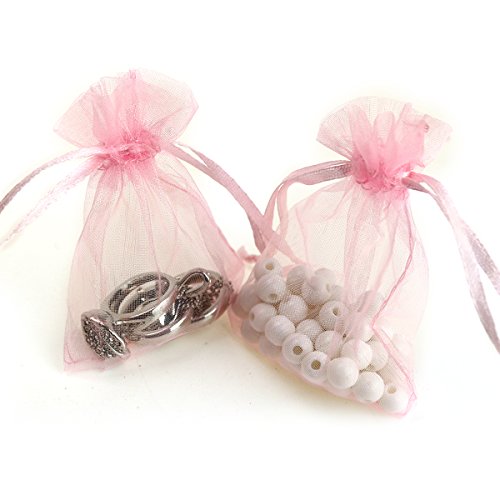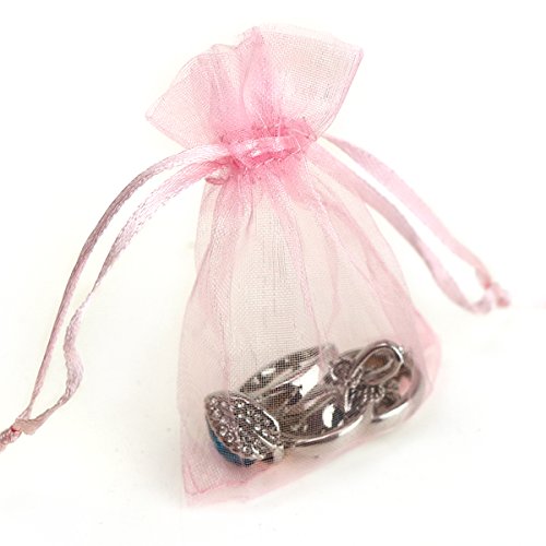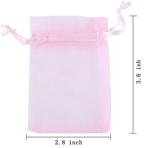 AKStore 100Pcs 2.8"x3.6"(7x9cm)Sheer Drawstring Organza Jewelry Pouches Wedding Party Christmas Favor Gift Bags (Pink)