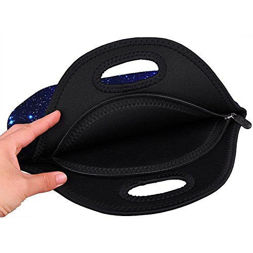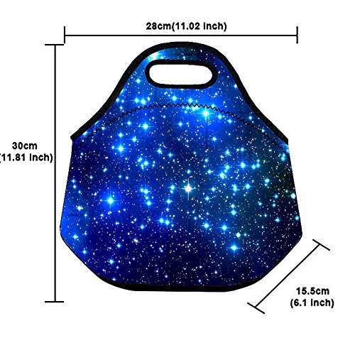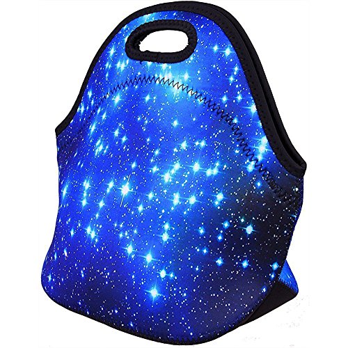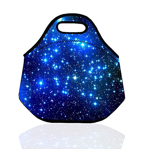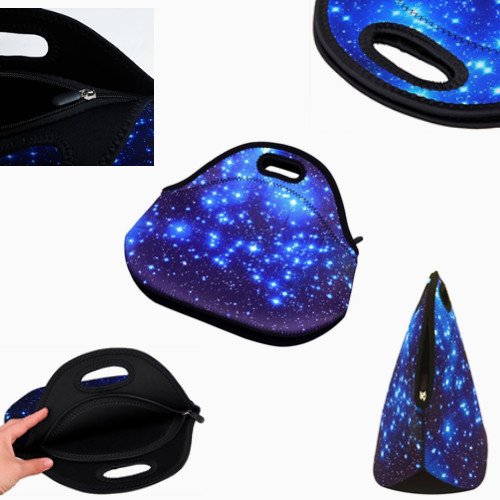 Neoprene Lunch Bag, Evary Insulated Waterproof Lunch Portable Carry Tote Picnic Storage Bag Lunch Box Food Bag Gourmet Handbag Pouch for School Office Travel Outdoor Thermal Blue Shining Stars Gift