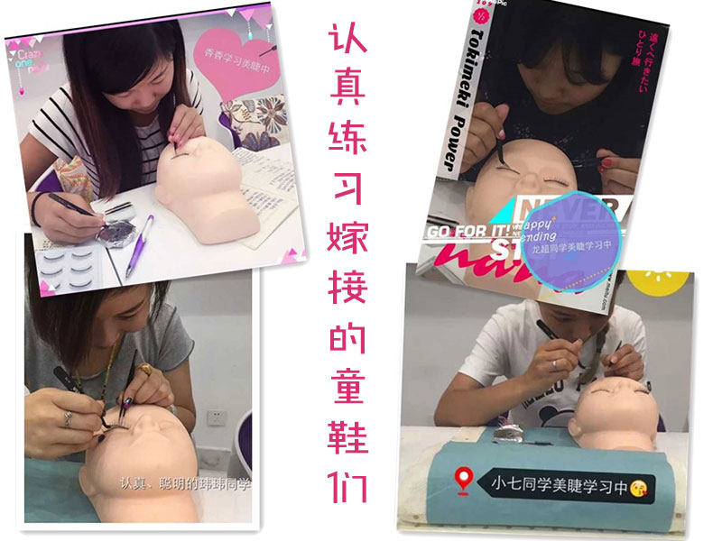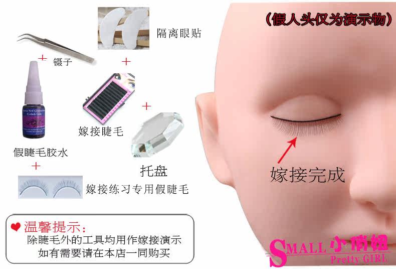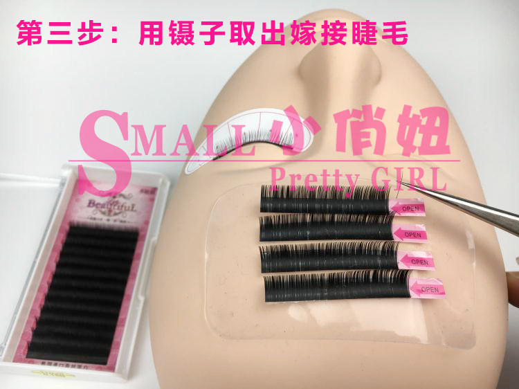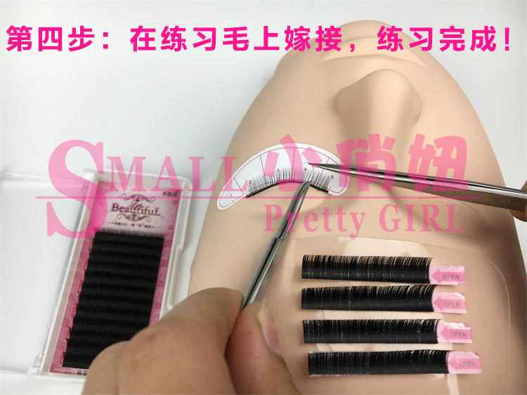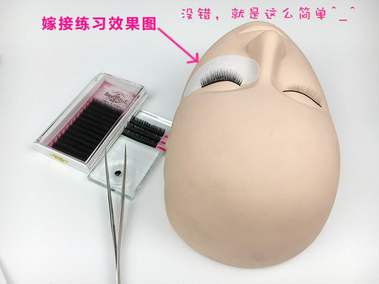为了保护头模,在进行嫁接练习时可适当添加隔离眼贴或者无纺布隔离胶带等种植工具,使胶水不易沾到头模上,同时也具有实战意义
