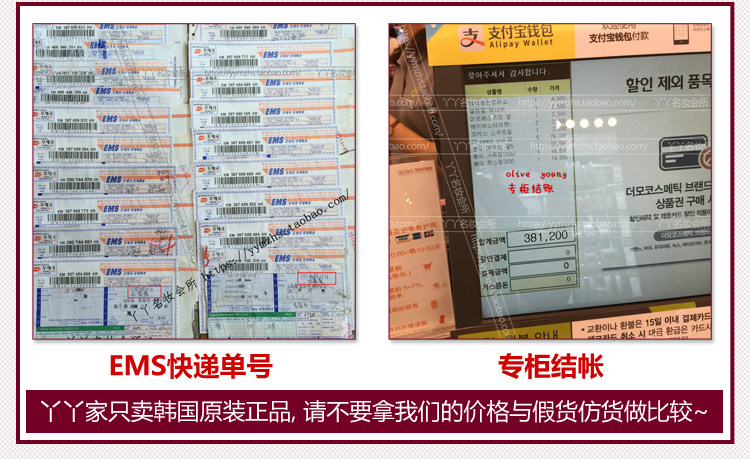 不是在专柜上拍几张照片就代表卖的是韩国正品了, 现代人谁还不出个国,拍个照片太容易了, 有专柜小票才代表在专柜上拿货!