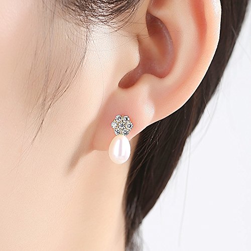 / 3, [Design] Snowflake shaped by AAA Cubic-Zirconia, natural pearl gentle and beautiful, delicate and exquisite.Perfect combination of the pearl and crystal luster gives you a peculiar visual feast by reflecting sunshine to different colors and endows a charming imagination and innovation to this elegant jewelry.Pearl earrings are a gift everyone will enjoy.Suitable any color of clothes, any style and attendance at different occasion.
