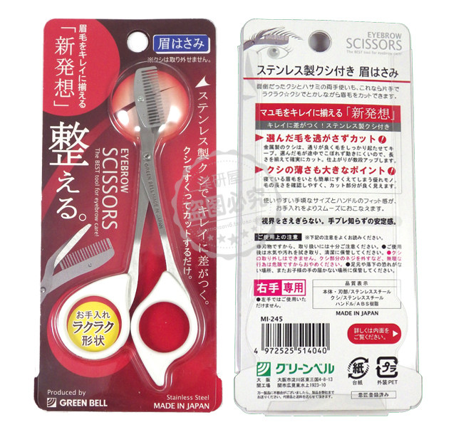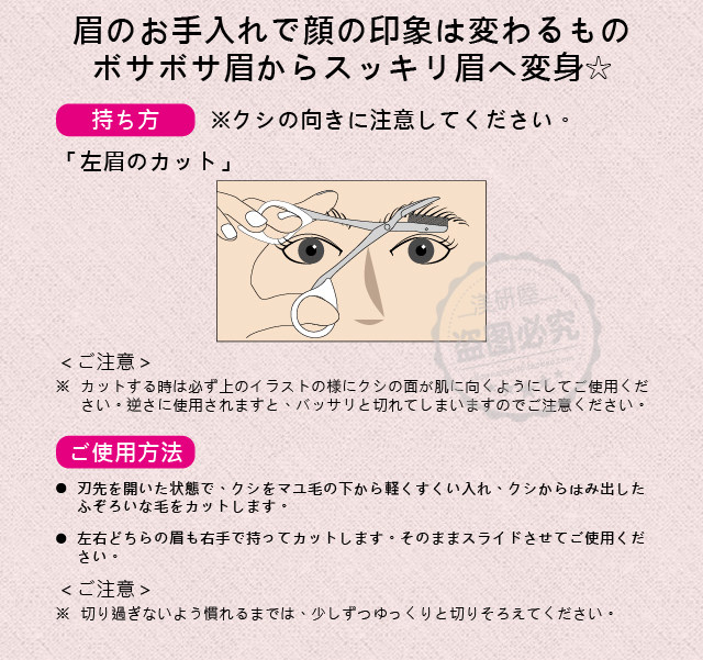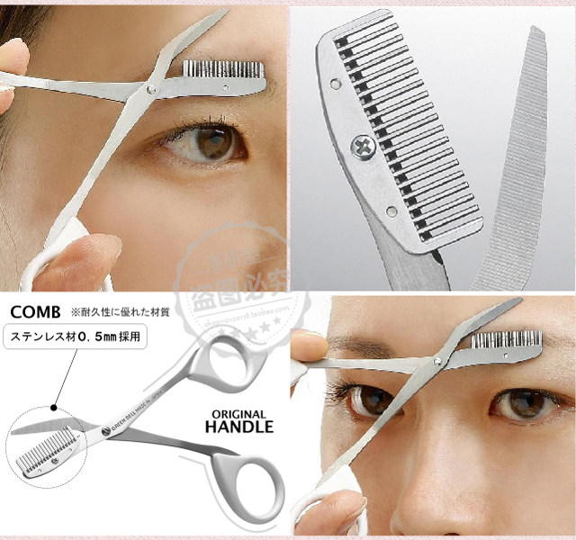 这是专為右手设计的美眉剪刀,使用时候,请将梳子贴近眉毛侧