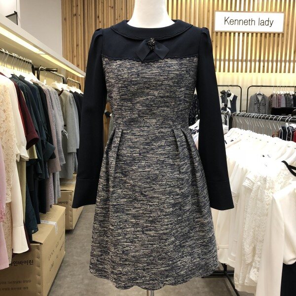 투톤 브로치 원피스 입니다~ 허리라인이 들어가 더욱 날씬해보이며 겨울이나 가을에 입기 좋은 제품이에요~