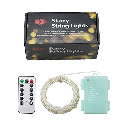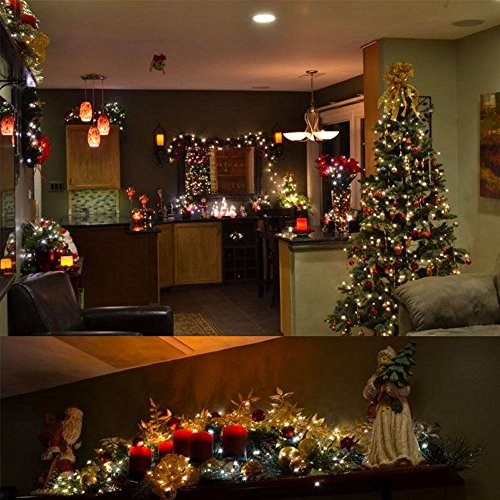 RUICHEN(TM) Battery Operated Dimmable String Lights 40ft 240 Led on Silver Wire with Remote Control 8 Lighting Mode Timer LED Starry Light for Wedding and Party(Warm White)