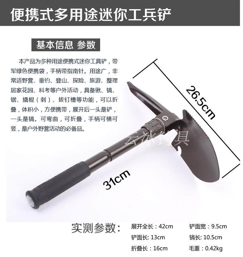 Brand: None Price tag: 20 Outdoor sports items: Camping Weight: 101g (inclusive) -150g (included) Expand Length: 61cm (inclusive) -70cm (inclusive) Price range: 0-50 yuan Number of functions: -10 (inclusive) Time to market: Winter 2015 Place of origin: China Additional features: bottle opener, ax, shovel, pulling
