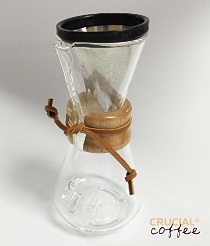 -. Feature : Stainless Steel cone coffee filter fits Chemex® 3 cup Coffee Makers / Washable & Reusable / This reusable filter lets the natural oils from your coffee through for better flavor and to provide a full-flavored coffee / Designed & Engineered by Crucial Coffee