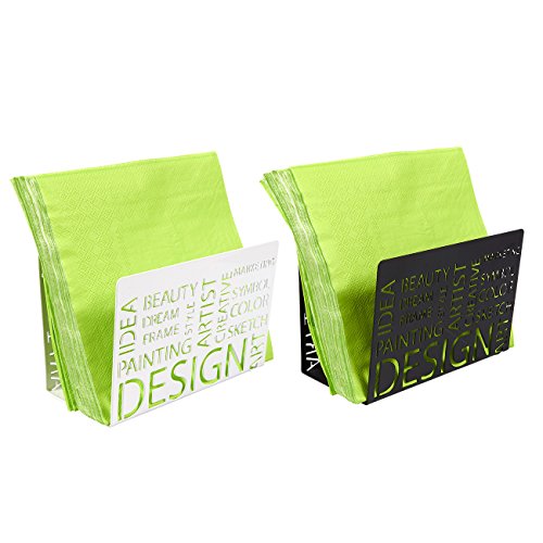 BEAUTIFUL & ELEGANT DESIGN: These set of 2 Napkin Holders feature iron-cut silhouettes of words associated with creativity. Black napkin holder has a matte finish while White has a glossy finish.