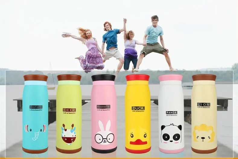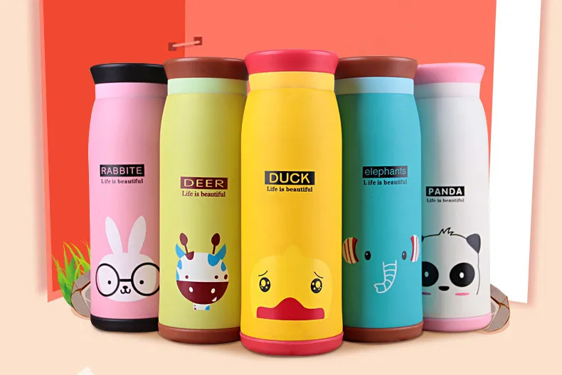 Botol minum dengan karakter kartun animal warna warni yang lucu.