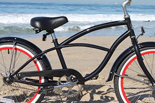 Firmstrong Urban Boy Single Speed Beach Cruiser Bicycle, 20-Inch, Black w/ Red Rims