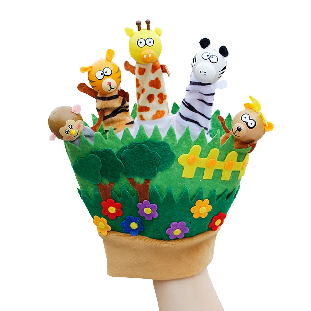 非常にかわいい漫画のハンドパペット、カラフルな、繊細な作業、手袋は5役割、だからあなたは、ストーリーより生き生きと引き付ける子供、それは偉大なストーリーテリングパフォーマンス小道具、小道具を作るためにゲーム、を幼稚園、家族に必要な