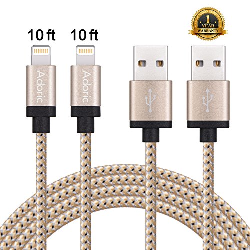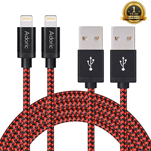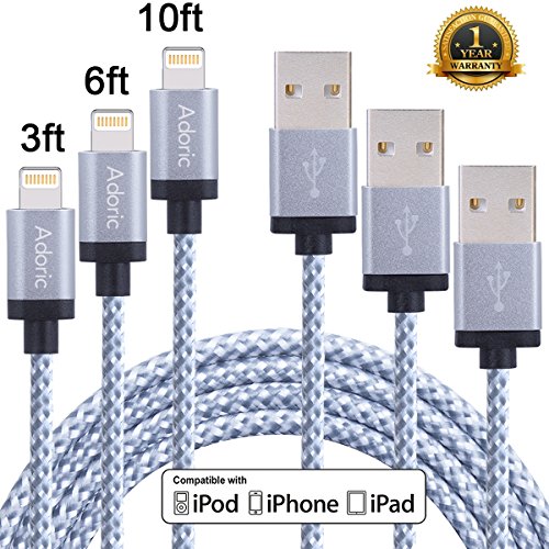 Adoric 3pcs 6ft/2m Extra Long Nylon Braided Tangle-Free 8 Pin Lightning Cable, Sync & Charge iPhone 6s/6s Plus/6/6Plus/5s/5c/5, iPad/iPod Models (White)