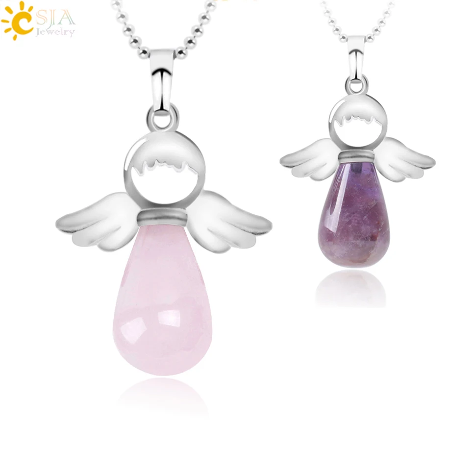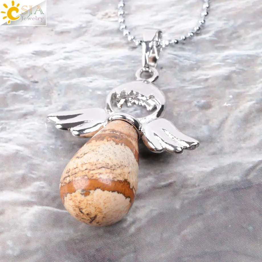 Pendant Feature:Angel Wings + Water Drop Shape + Natural Stone + Multicolor