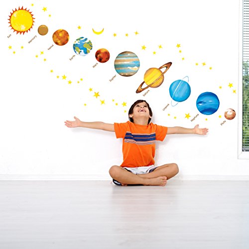Decowall DW-1307 Planets in the Space Kids Wall Decals Wall Stickers Peel and Stick Removable Wall Stickers for Kids Nursery Bedroom Living Room