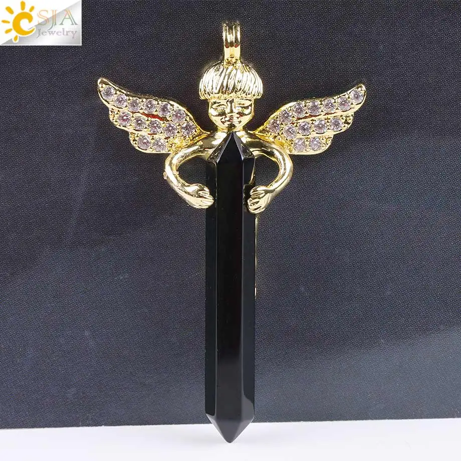 Pendant Feature:Cupid Angel Design + 2 Plated Colors + Natural Stone