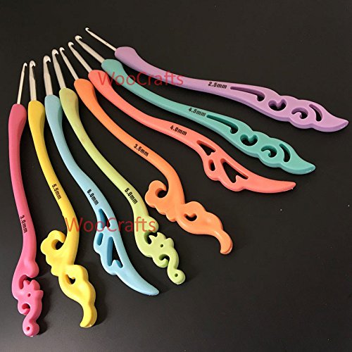 - Non-Slip and brightly colored handles with different colors for each size making it easier to recognize the hooks at a glance.The sizes of each hook included 2.5mm 3.0mm 3.5mm 4.0mm 4.5mm 5.0mm 5.5mm 6.0mm