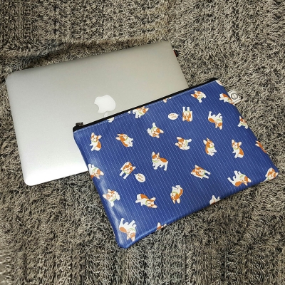귀여운 프렌치불독 프린트에 스트라이프패턴으로 조금 더 유니크하고 세련미 뿜뿜합니당! 지퍼마감으로 지퍼때문에 상처나지 않게 양쪽으로 1.5cm정도 더 여유있게 제작됩니다.지퍼 뒤쪽에 지퍼체인이 나오지 않아서 노트북의 스크래치를 방지합니다. 라미네이트 코팅된 원단으로 제작되어 방수와 오염에 강합니다.두툼한 7온스 압축솜이 들어 있어서 스크래치와 약간의 충격에서 노트북을 보호해 줍니다. 클러치로 사용하셔도 너무 귀염귀염 하네요~^^ 오염에도! 눈오는 날에도 비오는날에도 아주 실용적인 아이템이에요!파랑이라 겨울엔 어떨까 걱정이신분들 포인트로 들어주니 귀엽고 사랑스러워보인답니닷!라미네이트 코팅이 된 원단으로 방수는 물론 오염에도 강합니다.