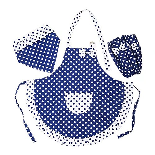 - Kitchen Cotton Kids Girl Apron set with Hat and 2pc of Oversleeves ,for 5-8 Years Blue Color,Half-Waterproof,Antifouling