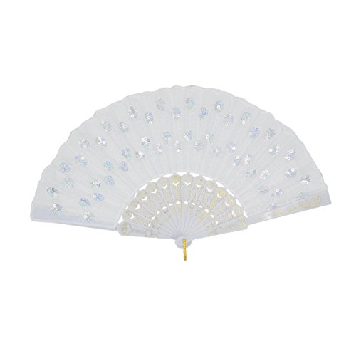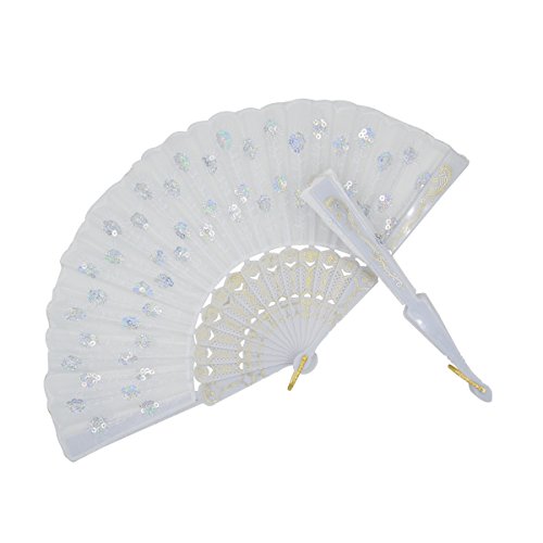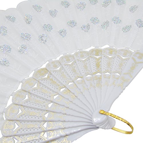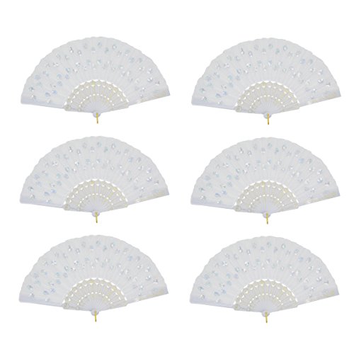 6 Packs White Spanish Floral Folding Hand Fan Women Lace Fan Handheld Fans for Wedding and Home Decoration
