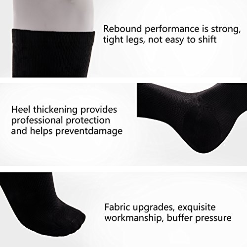 MATERIALS:60% nylon, 30% polyester, 10% spandex.The valuable pressure 15-20 mmHg .High quality materials which allows sweat absorption,shaping,deodorant,anti-stripping,anti-friction and good breathable.The compression socks are flexible and can be extended by 1 inches.