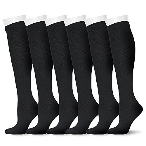 TAINOO 6 Pairs of Black Compression Socks for Men & Women Graduated Athletic Unisex Fit for Running Sports Nurses Shin Splints Flight Travel Maternity Pregnancy Stamina Circulation Recovery 15-20 mmHg