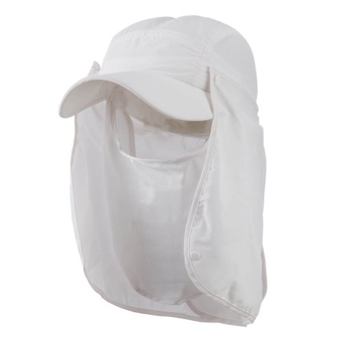 -. Binding : Apparel -. Brand : MG -. Department : mens -. Feature : Made of 100% Nylon. / One size fits most, fitting up to 7 1/2. / Crown measures 4 inches deep, with adjustable toggle closure, detachable double flaps in the back. / Brim measures 3.8 inches long, stiff and pre curved bill. / Packable and crushable. -. ProductGroup : Apparel -. ProductTypeName : HAT -. Title : UV 50+ Talson Removable Flap Breathable Cap - White