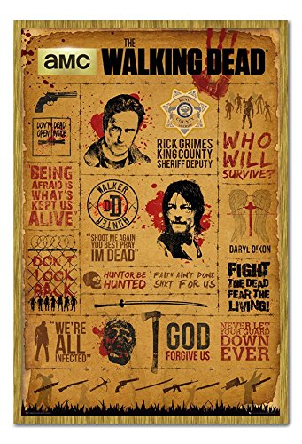 -. Title : The Walking Dead Infographic Poster Magnetic Notice Board Oak Framed - 96.5 x 66 cms (Approx 38 x 26 inches)